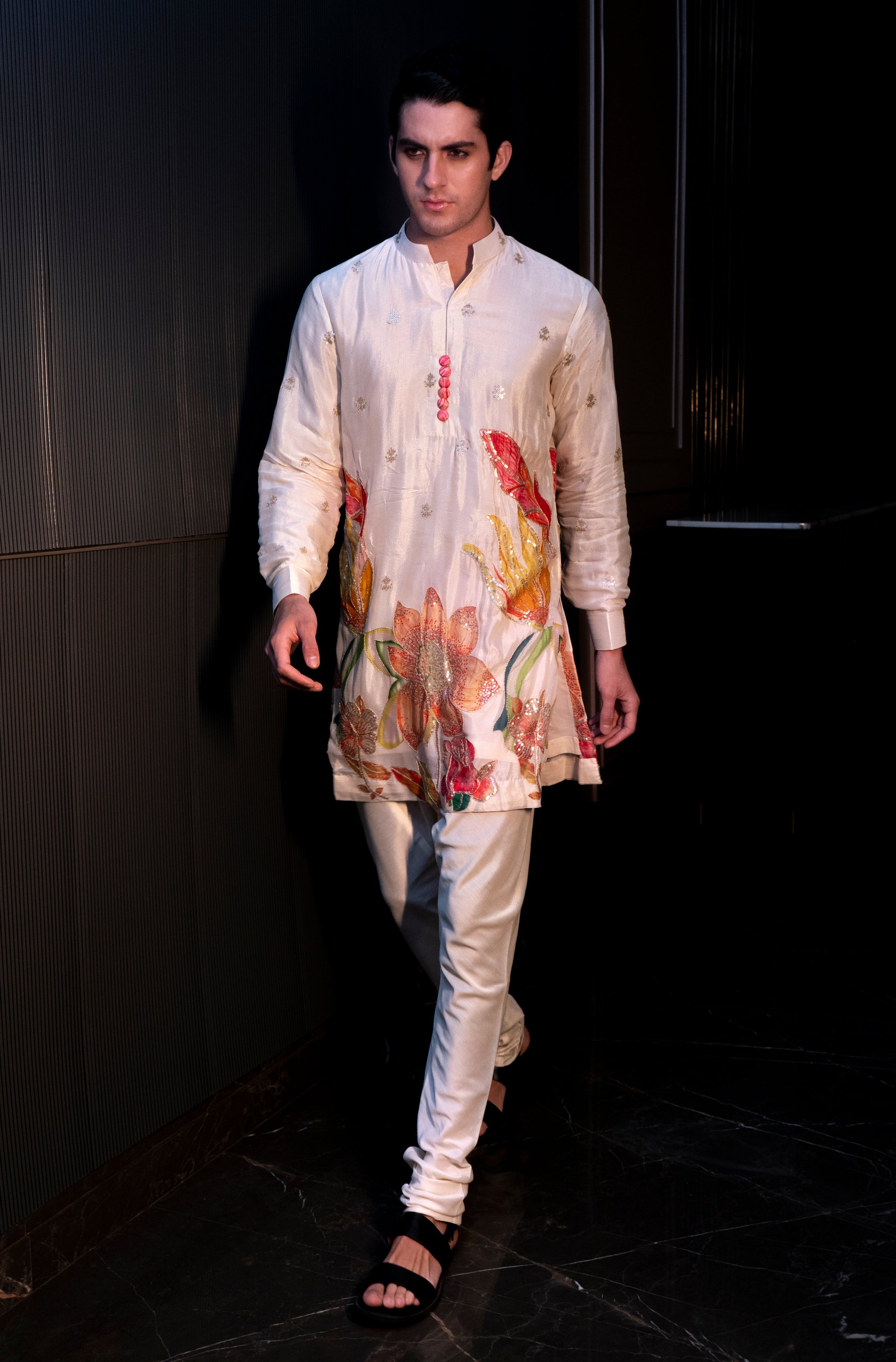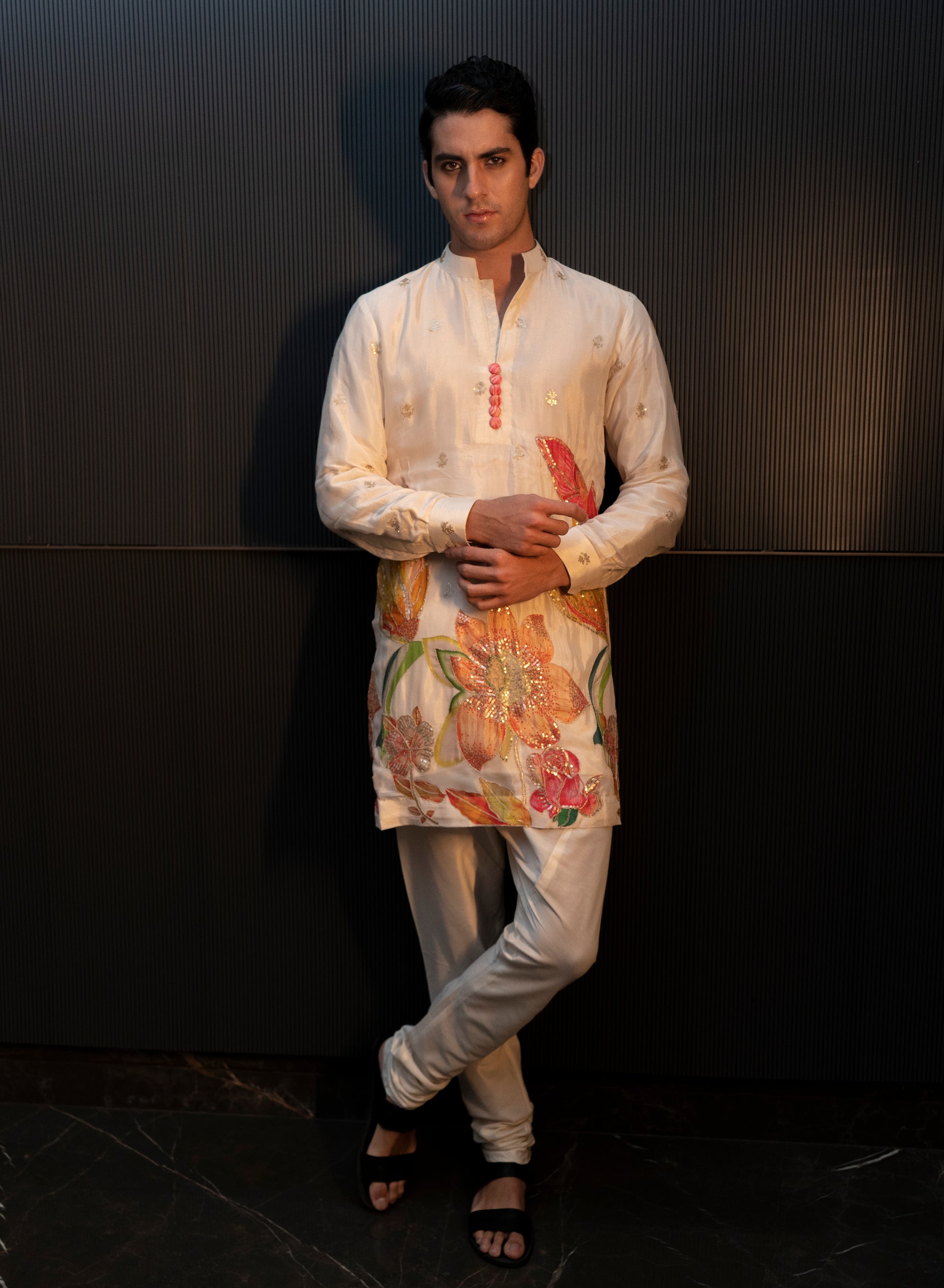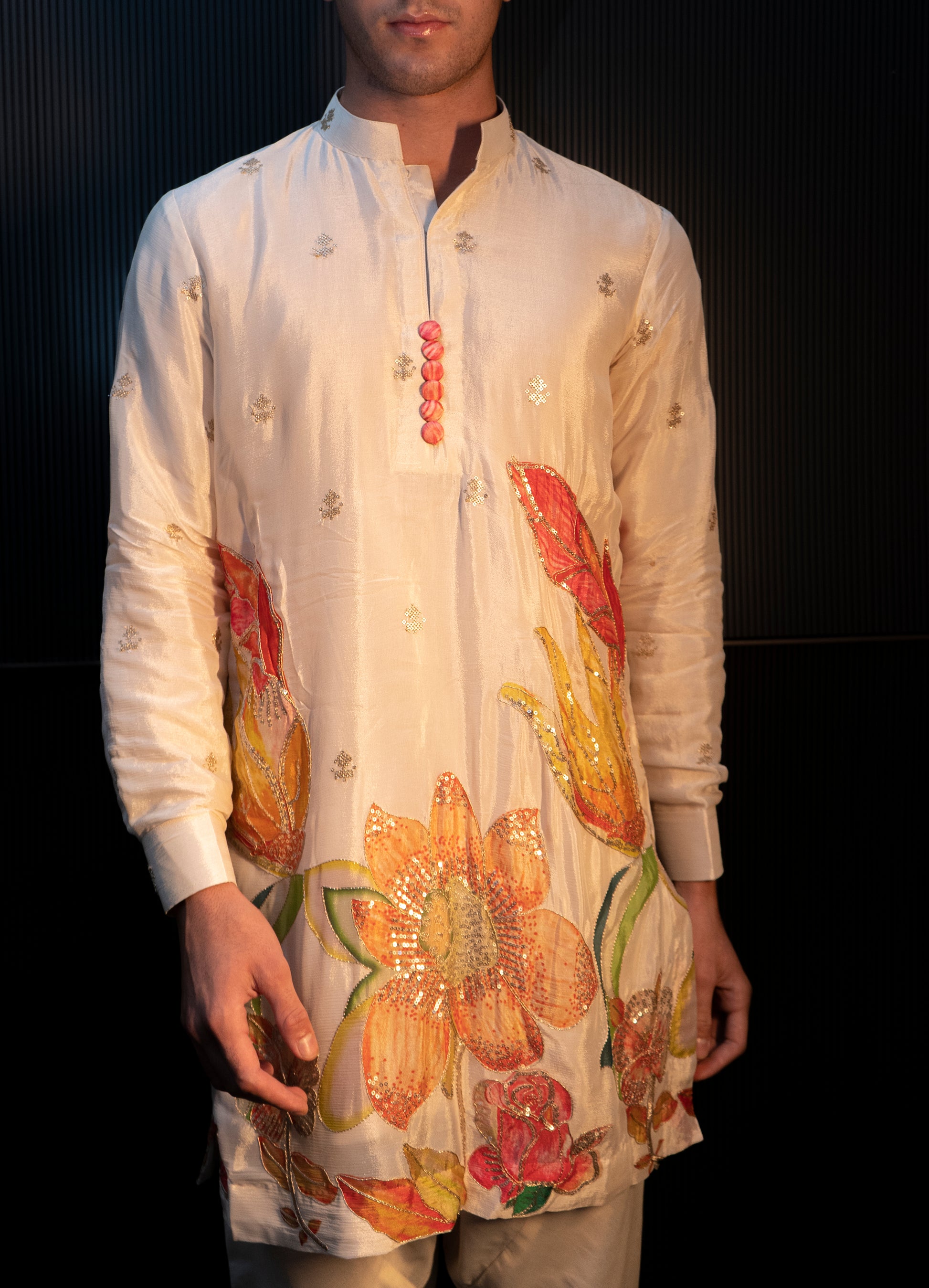The Rangrez Kurta in white chinnon silk is a blend of traditional craftsmanship and contemporary elegance. Crafted from soft, lightweight chinnon silk, it features intricate handprint designs that bring a subtle artistic charm to the fabric. Comfortable and breathable, this kurta is perfect for festive occasions, cultural events, or casual ethnic styling.