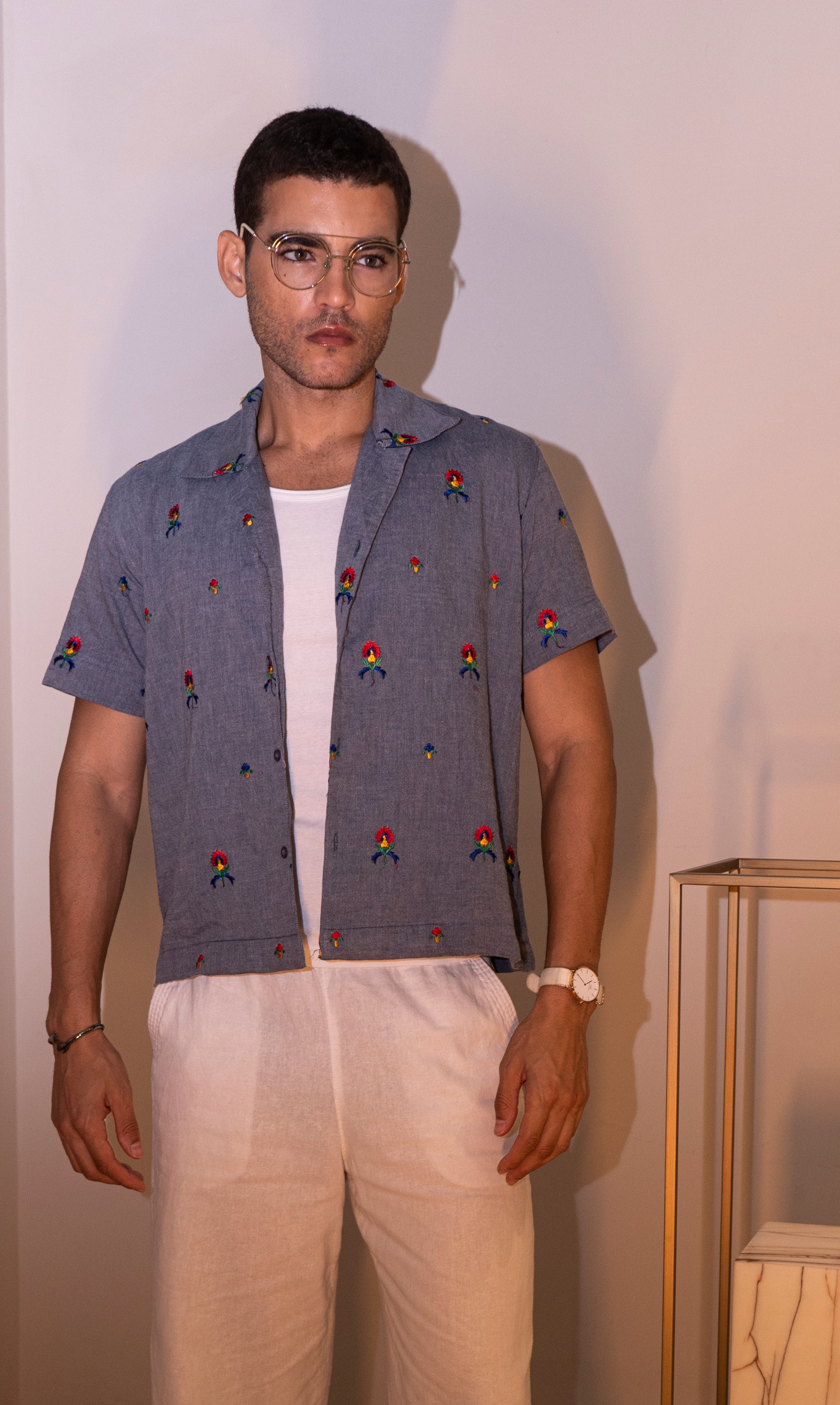 Crafted from breathable cotton denim, the Summer Flora shirt brings together comfort and artistry. Adorned with delicate floral embroidery, this piece is perfect for adding a refreshing seasonal vibe to your wardrobe. Lightweight yet structured, it offers both durability and softness, making it ideal for summer outings or casual evenings.